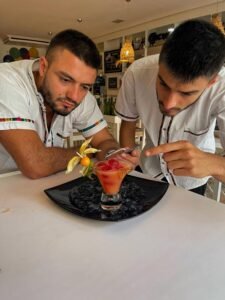 - Adornar con physalis, cáscara de limón y encender el palillo de madera. Apagar la llama justo antes de servir para lograr el efecto final de un verdadero beso de humo.