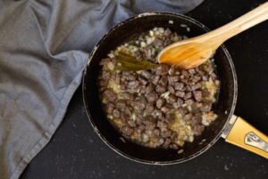Agregar medio vaso de agua y tapar la sartén, cocinar unos 20 minutos a fuego medio bajo.