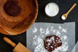 - Con un rodillo, aplanar la pasta hasta que tenga 5 milímetros de grosor.