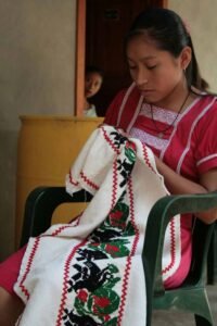 Mayté colabora con talleres artesanales como Tixochichuhuane y artesanías María Isabel, así como con talleres de mujeres marroquineras (que trabajan en la confección de las bolsas), por mencionar algunos y unas cuantas artesanas ya comienzan comienzan a trabajar sus propios diseños, un poco más alejados de los mismos artículos de siempre como la ropa y más atendiendo otros segmentos como bolsas para guardar computadoras y otros accesorios, con esto “pueden preservar y respetar sus costumbres y tradiciones con una sinergia en donde se pueden crear nuevos diseños y reactivar su economía, para dar a conocer al mundo lo que simbolizan sus trabajos (…) empiezan a confiar en sí mismas“.