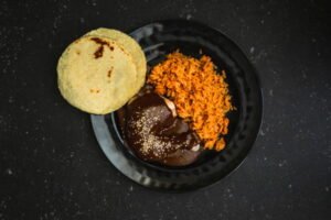 - Chichilo. Con chile chilhuacle negro y hoja de aguacate.