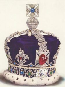 La corona real tiene incrustada una perla denominada Great Lemon, cuyo origen es el Mar de Cortés, ubicado en Baja California Sur, al norte de México. Fue extraída en 1883 por los buzos Juan Vacaseque Calderón, y Antonio Cervera, quienes la encontraron cerca de la isla del espíritu Santo. Su nombre hace referencia al tamaño de la misma, semejante a la de un limón.