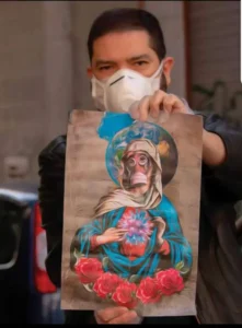 Coloridos recortes de la imagen católica de la Virgen, del revolucionario mexicano Emiliano Zapata, o de la pintora Frida Kahlo nacen de las manos de Ernesto Muñiz, un artista mexicano perdido en el mundo, en específico, en España, el arte de Muñiz visibiliza los amores y las pasiones de los mexicanos.