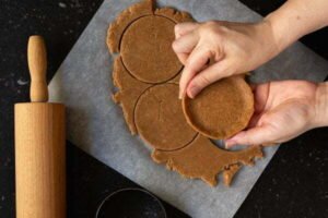 - Cortar la masa en 6 partes y formar con las manos los sopes o tlacoyos o extender la masa con ayuda de dos pliegos de papel para hornear y un rodillo, utilizar un cortador redondo y formar el borde en la orilla de los sopes con las manos. Para los tlacoyos, cortar la figura con la ayuda de un cuchillo.