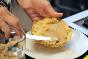 - 1 1/2 tazas de frijoles refritos